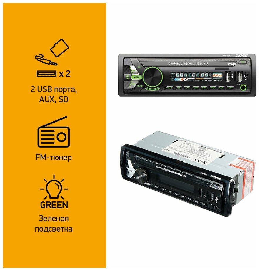 Автомагнитола Digma DCR-390G 3827100 .