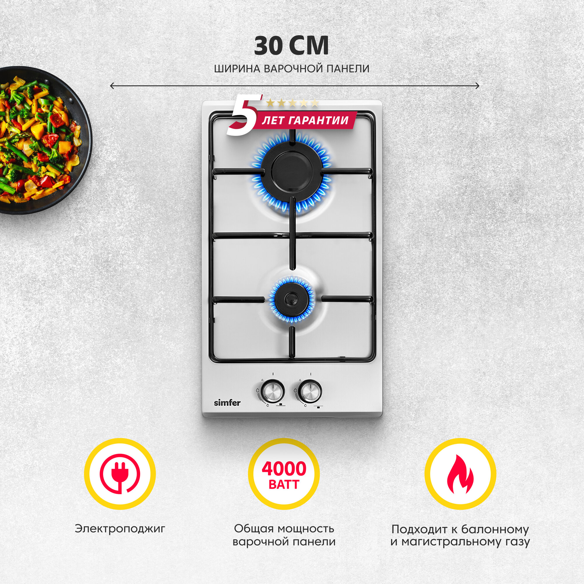 Газовая варочная панель Simfer H30V20B420, с автоподжигом 8 590 ₽ Подробнее