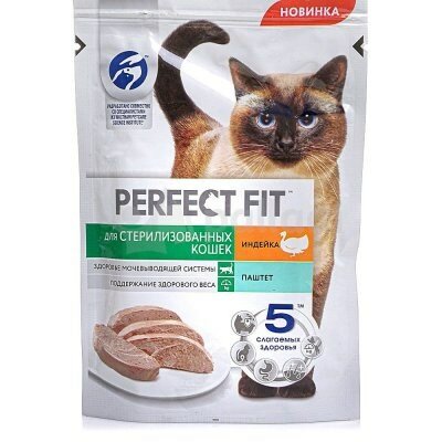 Лучшие цены. Влажный корм в паучах PERFECT FIT паштет с индейкой для стерилизованных кошек разработан по специальной рецептуре для контроля здоровья кошек, прошедших стерилизацию. Здоровье мочевыводящей системыПоддерживает здоровье мочевыводящей системы у стерилизованных кошек, подверженных повышенному риску развития мочекаменной болезниПоддержание здорового весаСпециальный ингредиент L-карнитин способствует сжиганию жиров, помогая поддерживать здоровый весДля взрослой кошки среднего веса (4кг). Магазины в вашем городе.