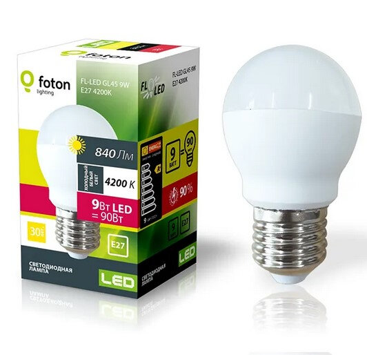 Лучшие цены. FL-LED GL45 9W E27 4200К 220V 840Лм d45x80 FOTON_LIGHTING - лампа шарик светодиодная. Магазины в вашем городе.