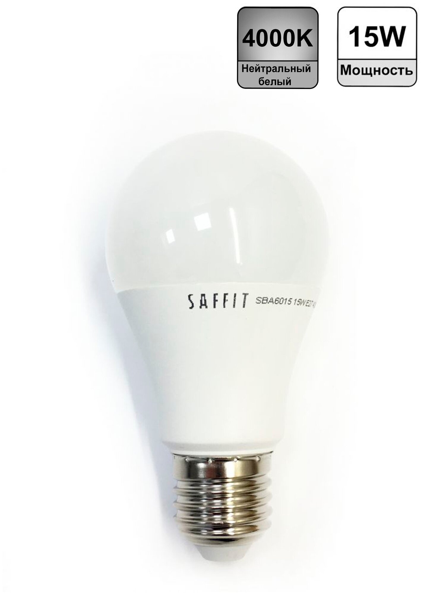 Лампа светодиодная Saffit SBA6015 55011, E27, A60, 15 Вт, 4000 К