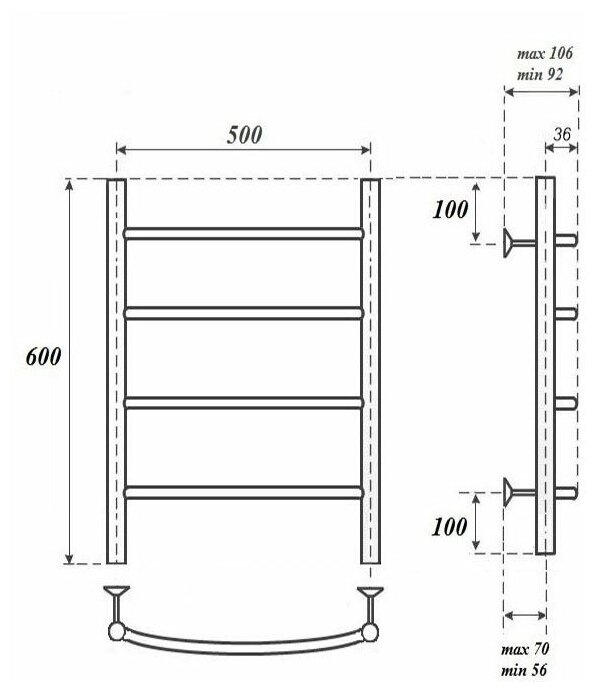 Полотенцесушитель Полотенцесушитель водяной 500x600 POINT Афина (PN04156 П4)