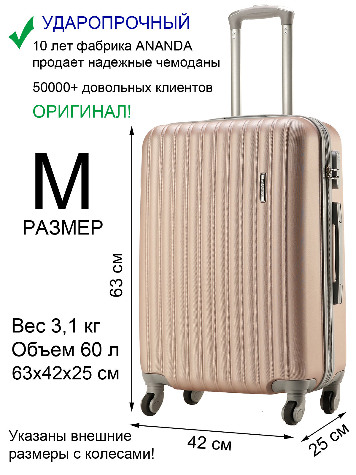 Чемоданы Чемодан на колесах ANANDA, средний размер М, 63 см, 60 л, розовое золото