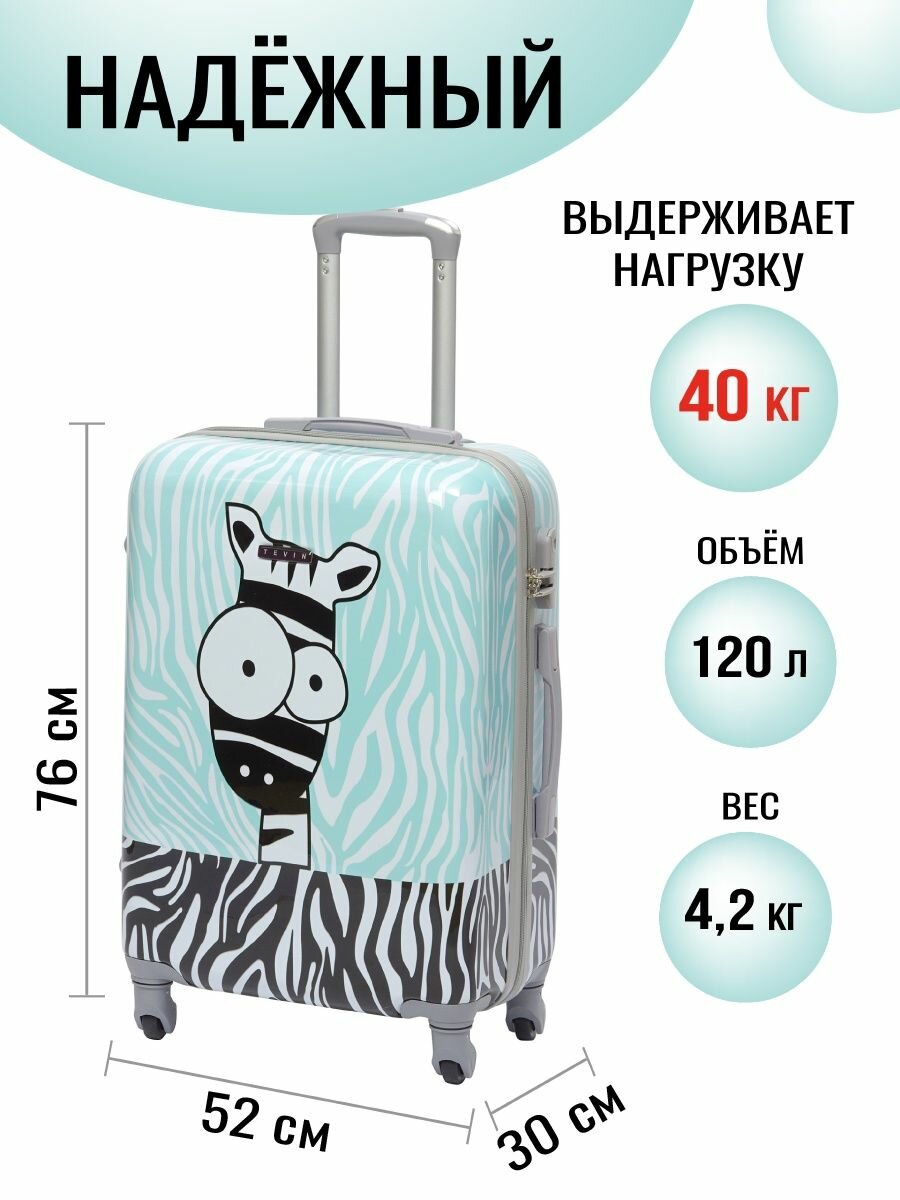 Чемодан на колесах дорожный средний багаж для путешествий s+ TEVIN размер С+ 60 см 52 л небольшой и легкий 2.6 кг прочный поликарбонат с изображением