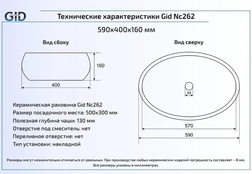 Раковина Gid Color Edition Nc262 59x40x16 см накладная белый с серебряным 10 350 ₽ Подробнее