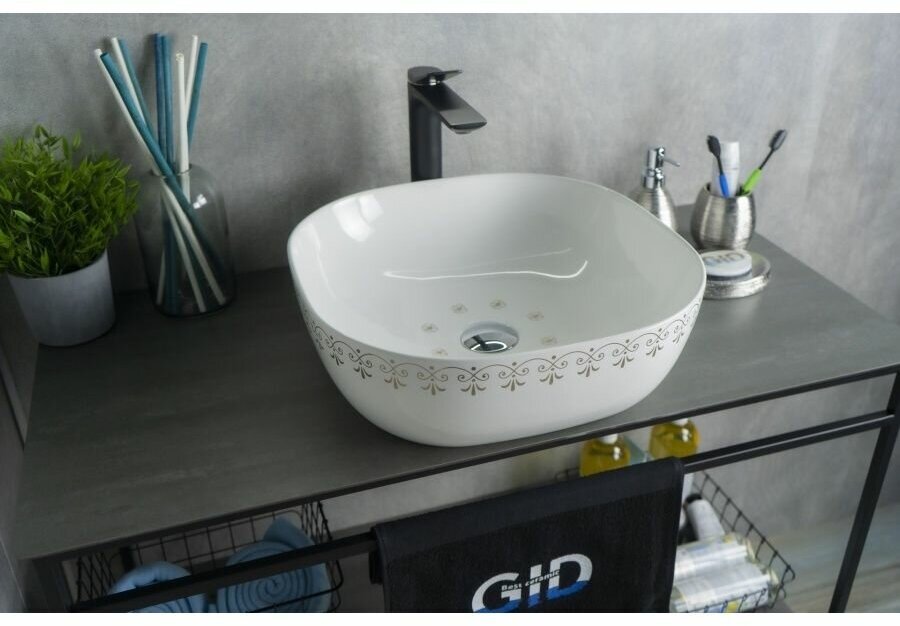 Керамическая накладная раковина в ванную Gid Nc440 с сифоном ORIO A3202