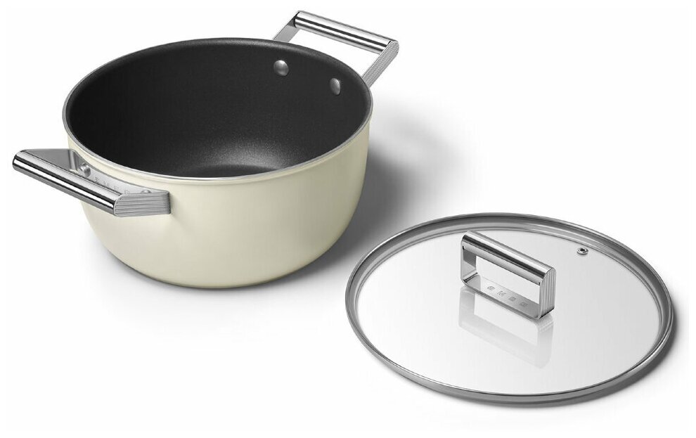 Кастрюли SMEG CKFC2411CRM Кастрюля с двумя ручками и крышкой 24 см, 4.6 л, кремовая