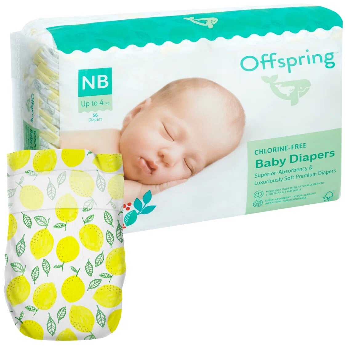 Подгузники (памперсы) Подгузники Offspring расцветка Лимоны NB (2-4 кг) 56 шт