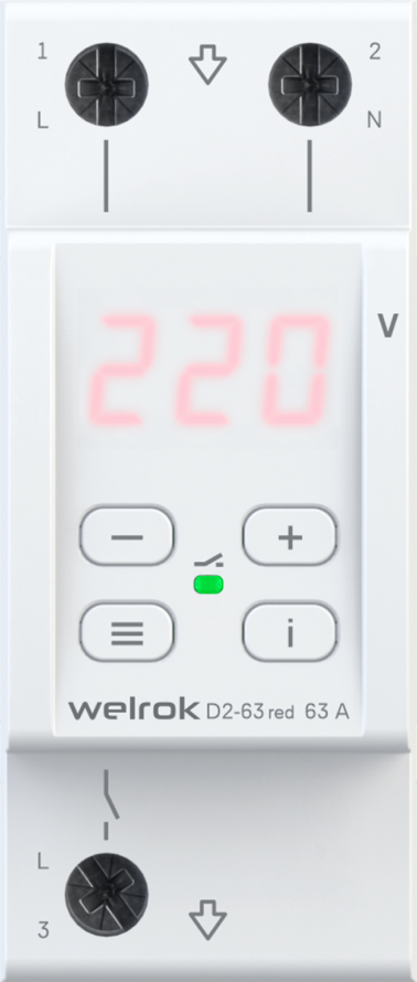 Welrok D2-63 RED Двухмодульное реле напряжения с термозащитой 63A