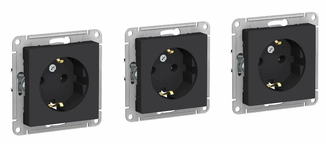 Schneider Electric AtlasDesign Розетка с заземлением, 16А, механизм розетки, цвет Черный (Карбон) ATN001043 10шт