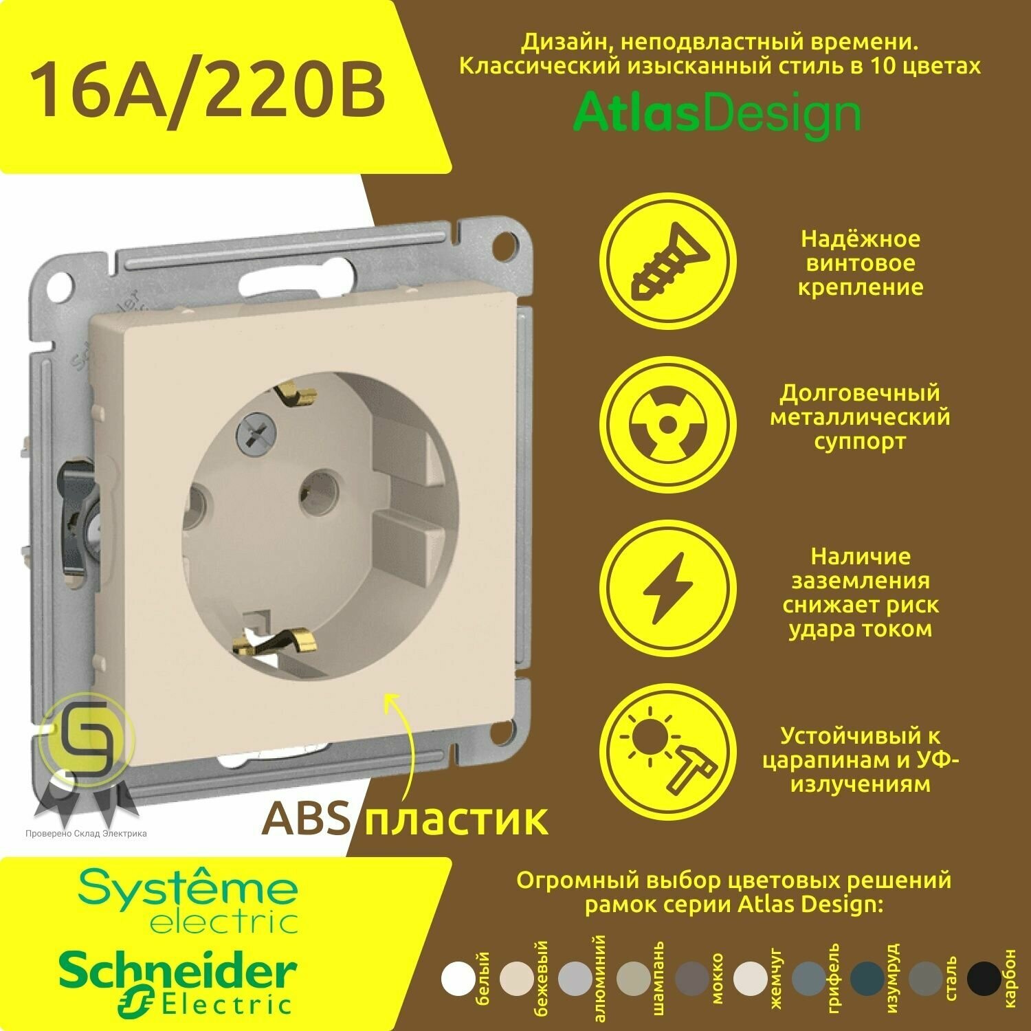Холодильники Розетка бежевый AtlasDesign с заземлением ATN000243 Schneider Electric / Systeme Electric 10шт