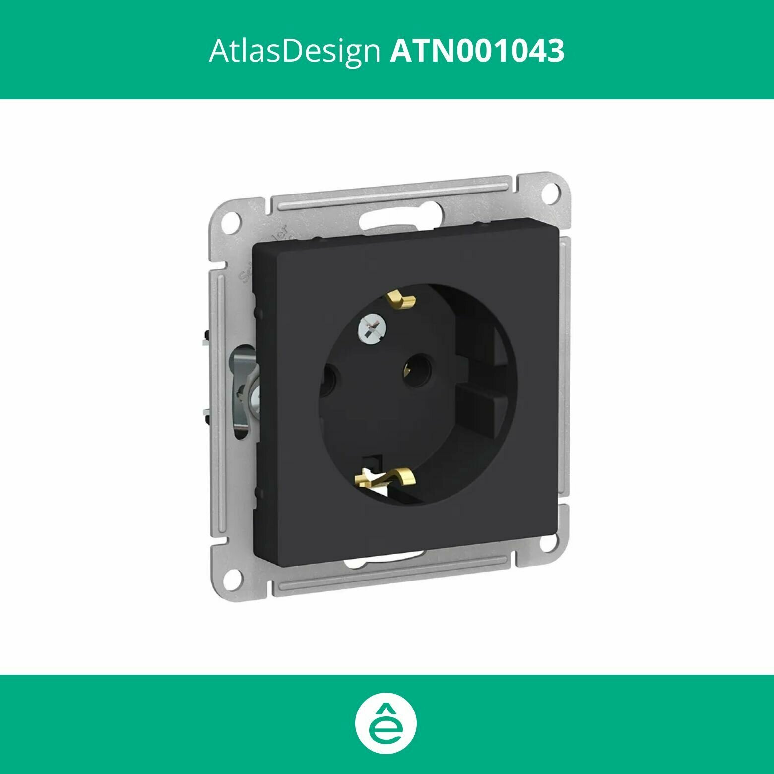 Schneider Electric AtlasDesign Розетка с заземлением, 16А, механизм розетки, цвет Черный (Карбон) ATN001043 10шт