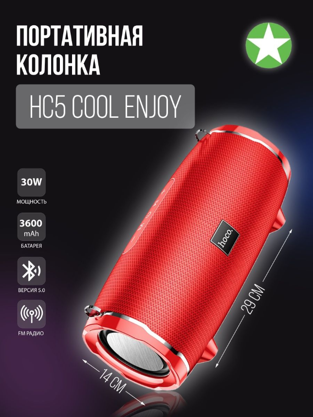 Портативная акустика Hoco HC5 Cool Enjoy, 30 Вт, красный 3 590 ₽ Подробнее