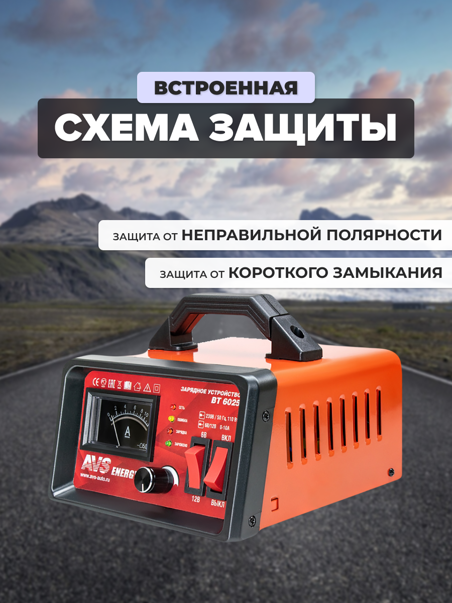 Зарядное устройство для автомобильного аккумулятора AVS BT-6025 (10A) 6/12V