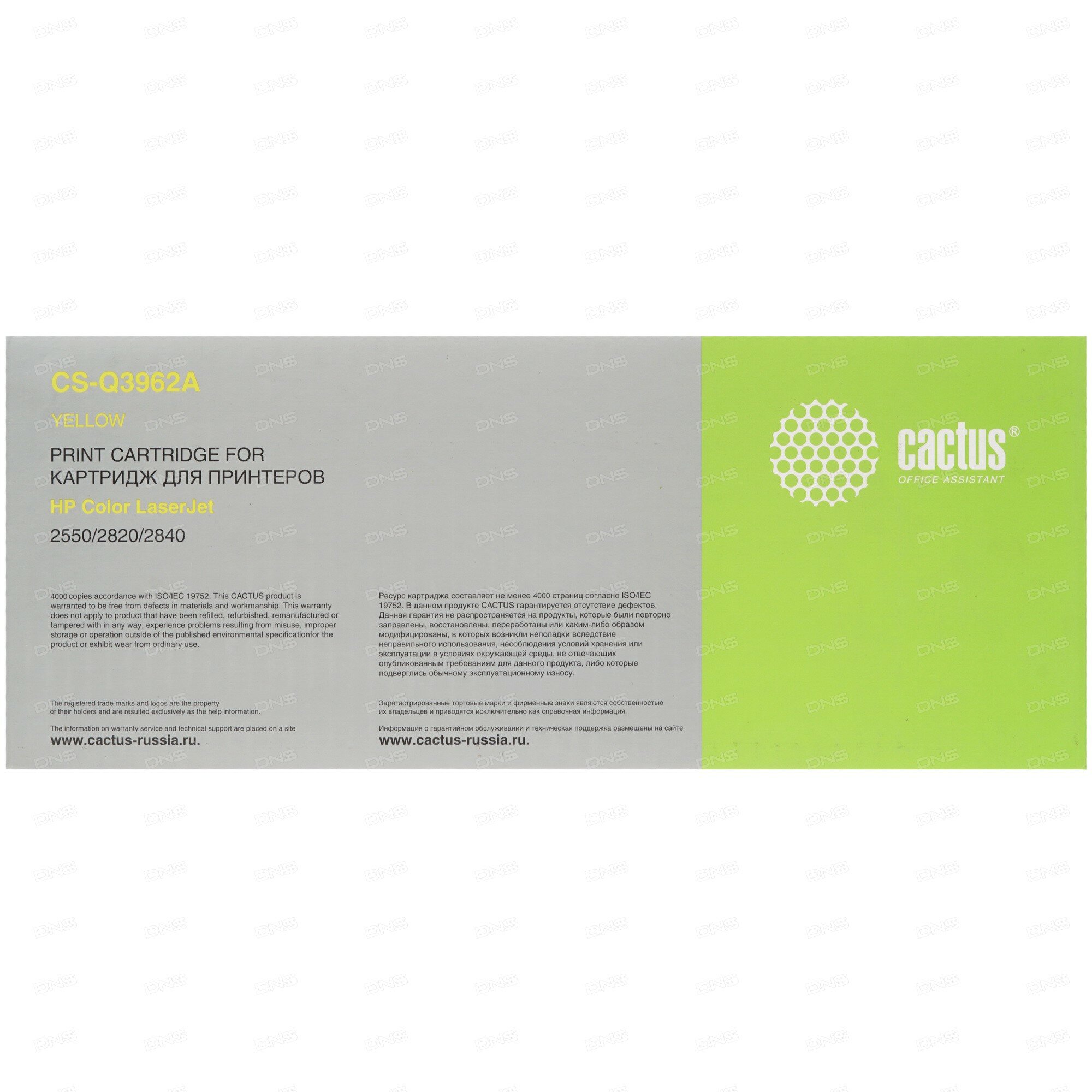 Тонер-картридж Cactus Q3962A желтый (4000стр.) для HP LJ 2550/2550L/2550LN/2550N