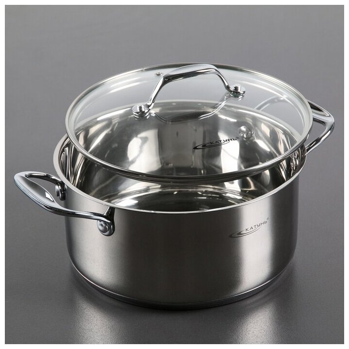 Кастрюля Кастрюля нержавеющая сталь, 4.2 л, с крышкой, Катунь, Ника, KT02-D-40