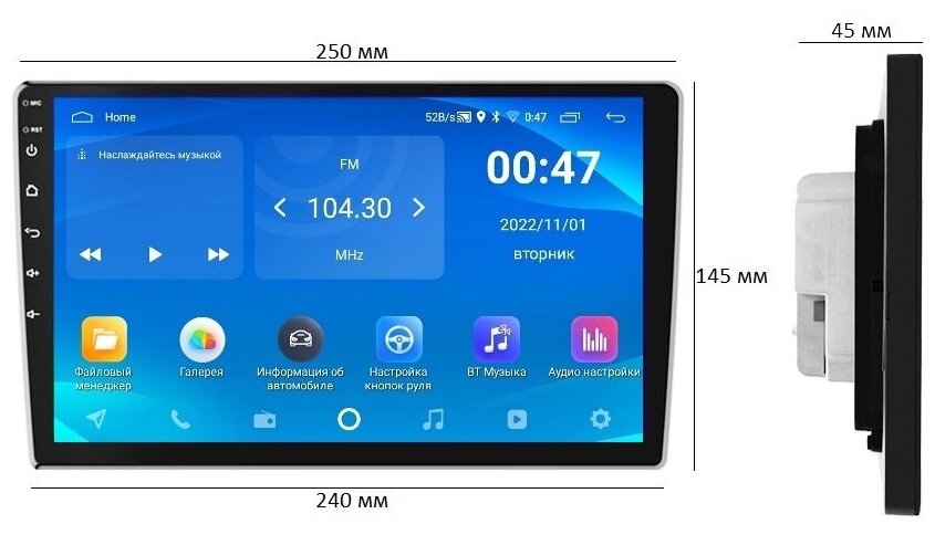 | Мультимедиа | Android v 10.0 / GPS-модуль / режим видеорегистратора / Bluetooth / Wi-Fi модуль / 3G ready / 4G (LTE) ready |