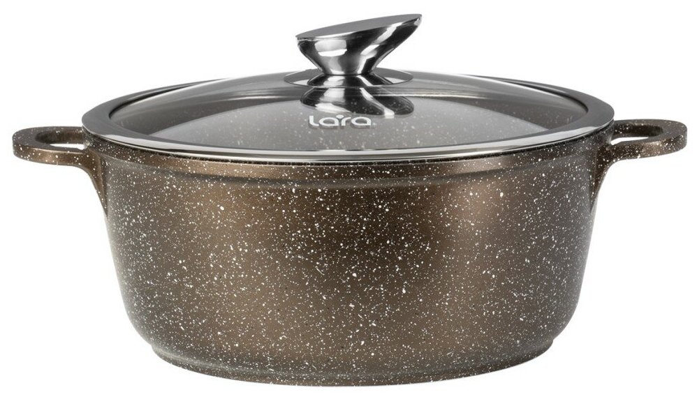 Кастрюля LARA LR02-205 серия CHOCO /26см, 5л, мрамор, капсул.индукц.дно, крышка 60752