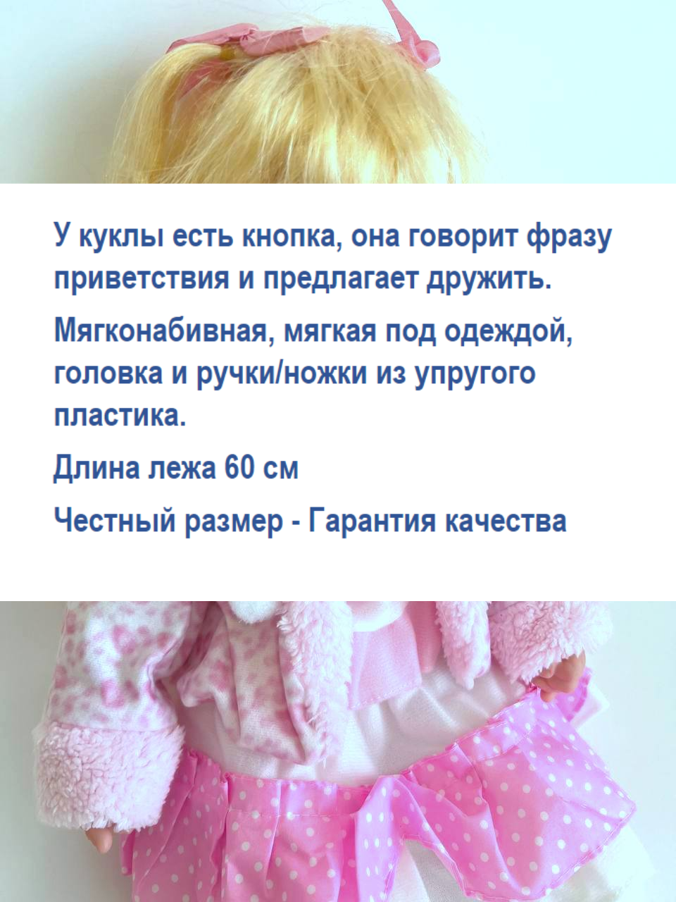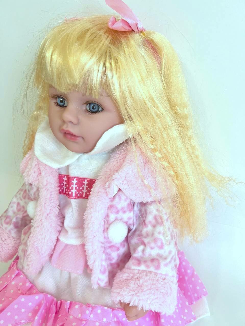 Большая кукла 60 см в розовой курточке, интерактивная в подарочной упаковке, в платье, говорит