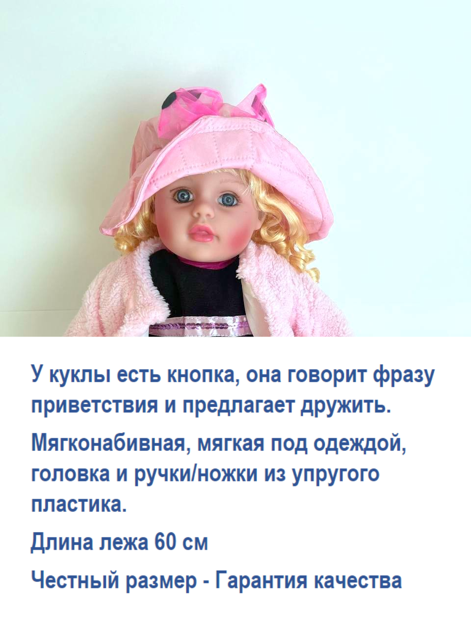 Большая кукла для девочки 60 см в курточке и шапочке, интерактивная в подарочной упаковке, говорит