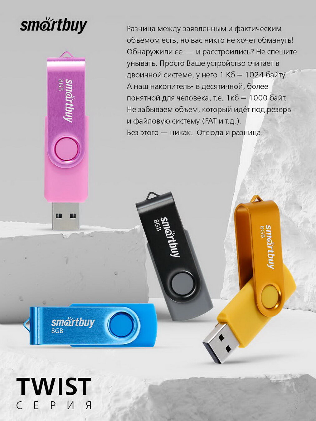 USB-флешки Smartbuy Флешка Smartbuy Twist, 8 Гб, USB 2.0, чт до 25 Мб/с, зап до 15 Мб/с, синяя