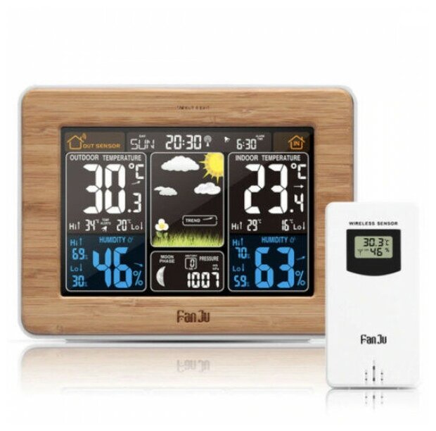Лучшие цены. Метеостанция FanJu FJ3365 с выносным датчиком и цветным дисплеем - это очень нужный и полезный прибор, который просто необходим в Вашем доме. Данная метеостанция снабжена ярким контрастным дисплеем, на котором одновременно и наглядно отображены все самые важные показатели температуры, давления и влажности не только в доме, но и за его пределами. Присутствие в комплекте чувствительного беспроводного выносного датчика открывает перед портативной погодной метеостанцией просто безграничные возможности, ведь с. Магазины в вашем городе.