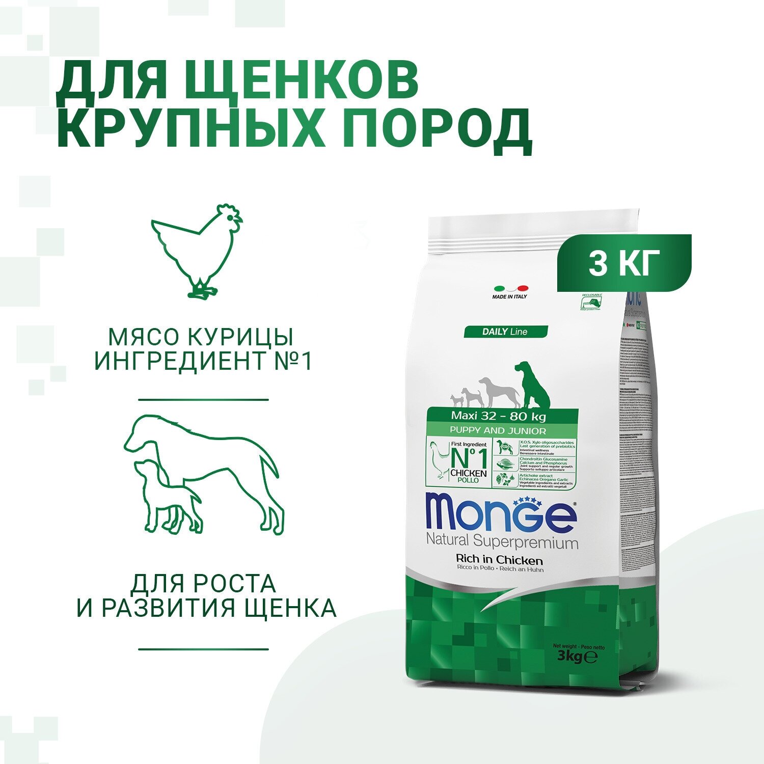 Корм сухой MONGE Dog Daily Line Maxi Puppy курица для щенков крупных пород 3кг
