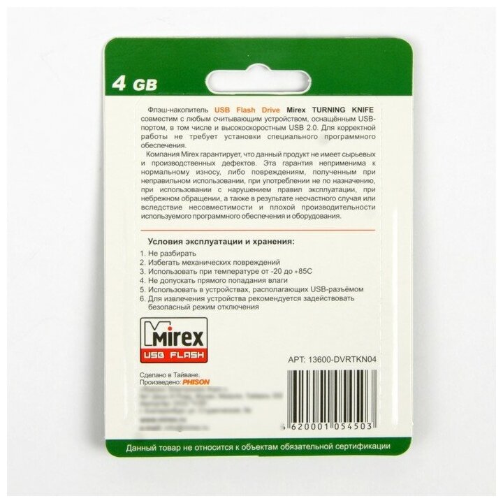 USB флеш-диск 4Gb Mirex TURNING KNIFE 4GB (ecopack)