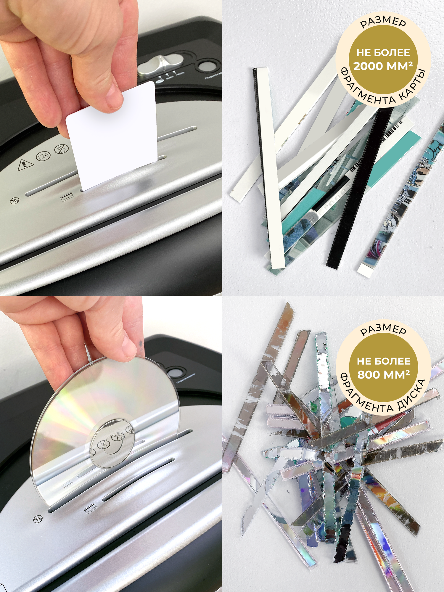| Уничтожает | степлерные скобы, канцелярские скрепки, пластиковые карты, оптические диски |