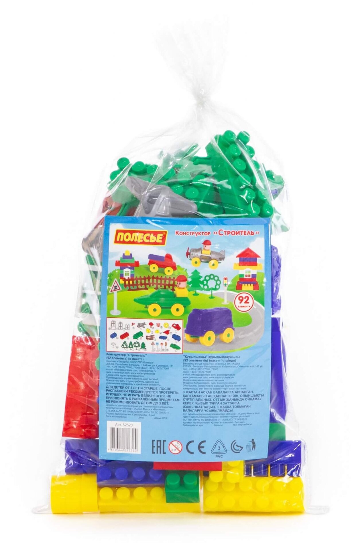 Конструктор Конструктор "Строитель" (92 элемента) (в пакете)