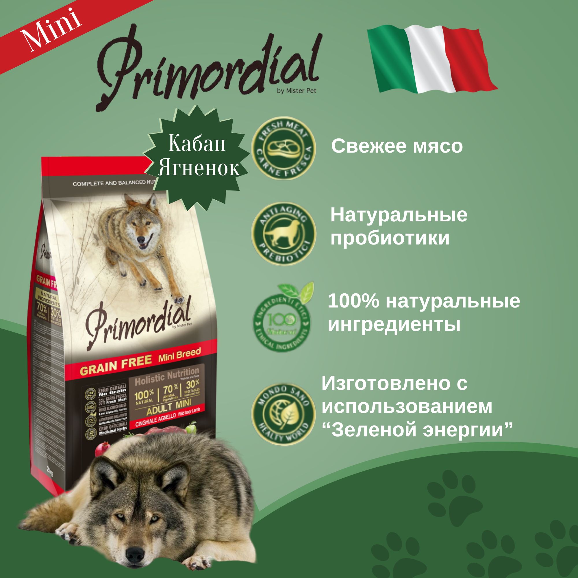 PRIMORDIAL MINI ADULT 2кг корм сухой для собак мелких пород беззерновой кабан ягненок