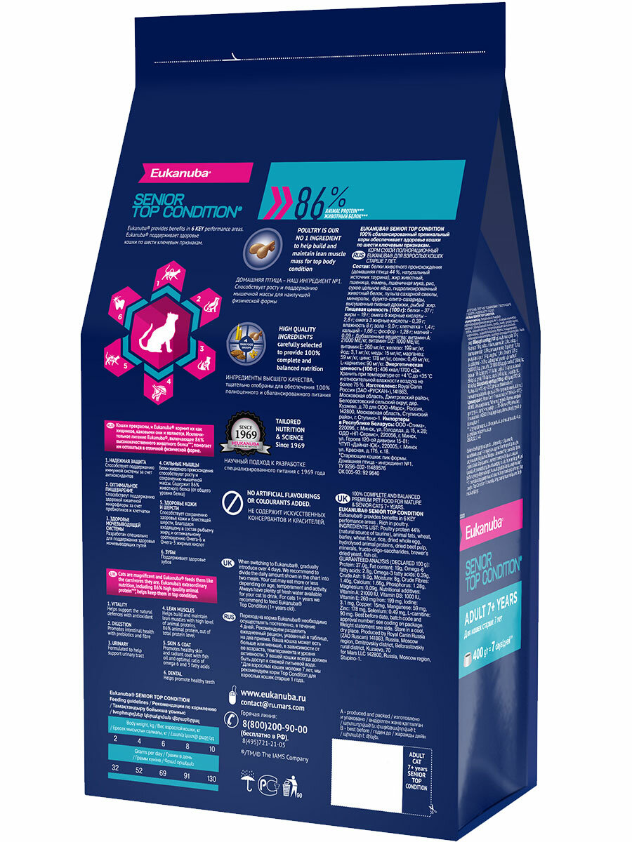 Корм для кошек Корм Eukanuba Senior для кошек старше 7 лет, с домашней птицей, 2 кг