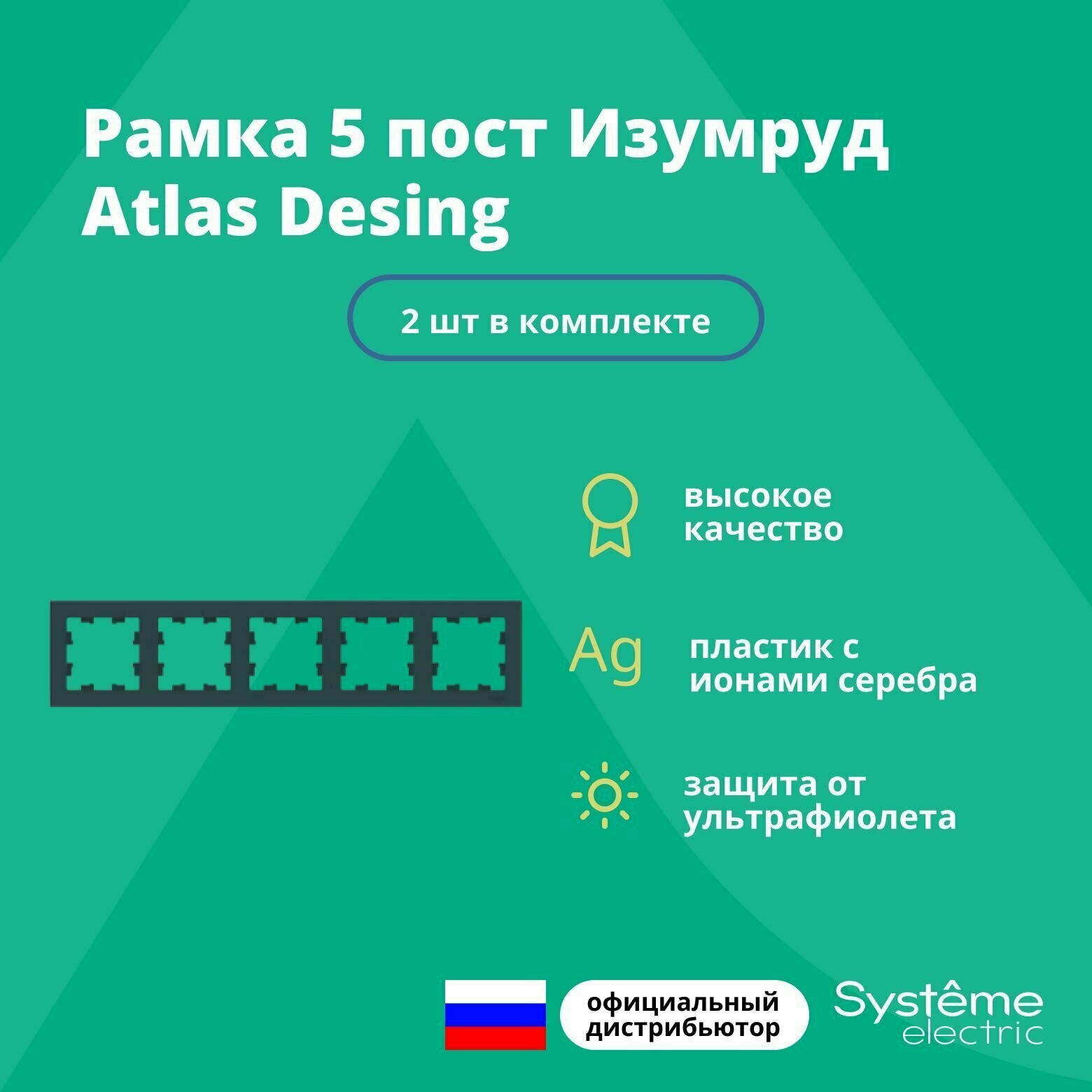 Розетки Рамка пятиместная для розеток и выключателей Schneider Electric (Systeme Electric) Atlas Design изумруд ATN000805 - 2 шт.