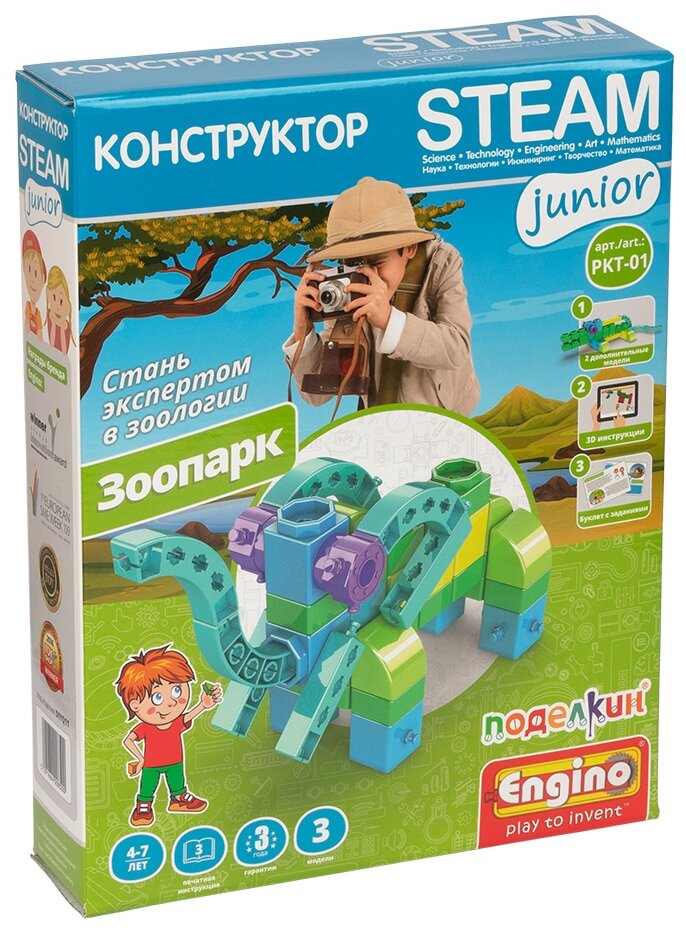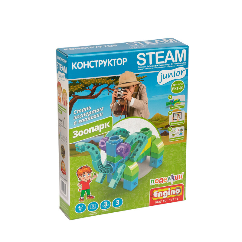 Конструкторы Конструктор пластиковый "Поделкин" & "Engino" PKT-01 Зоопарк 34 элемента