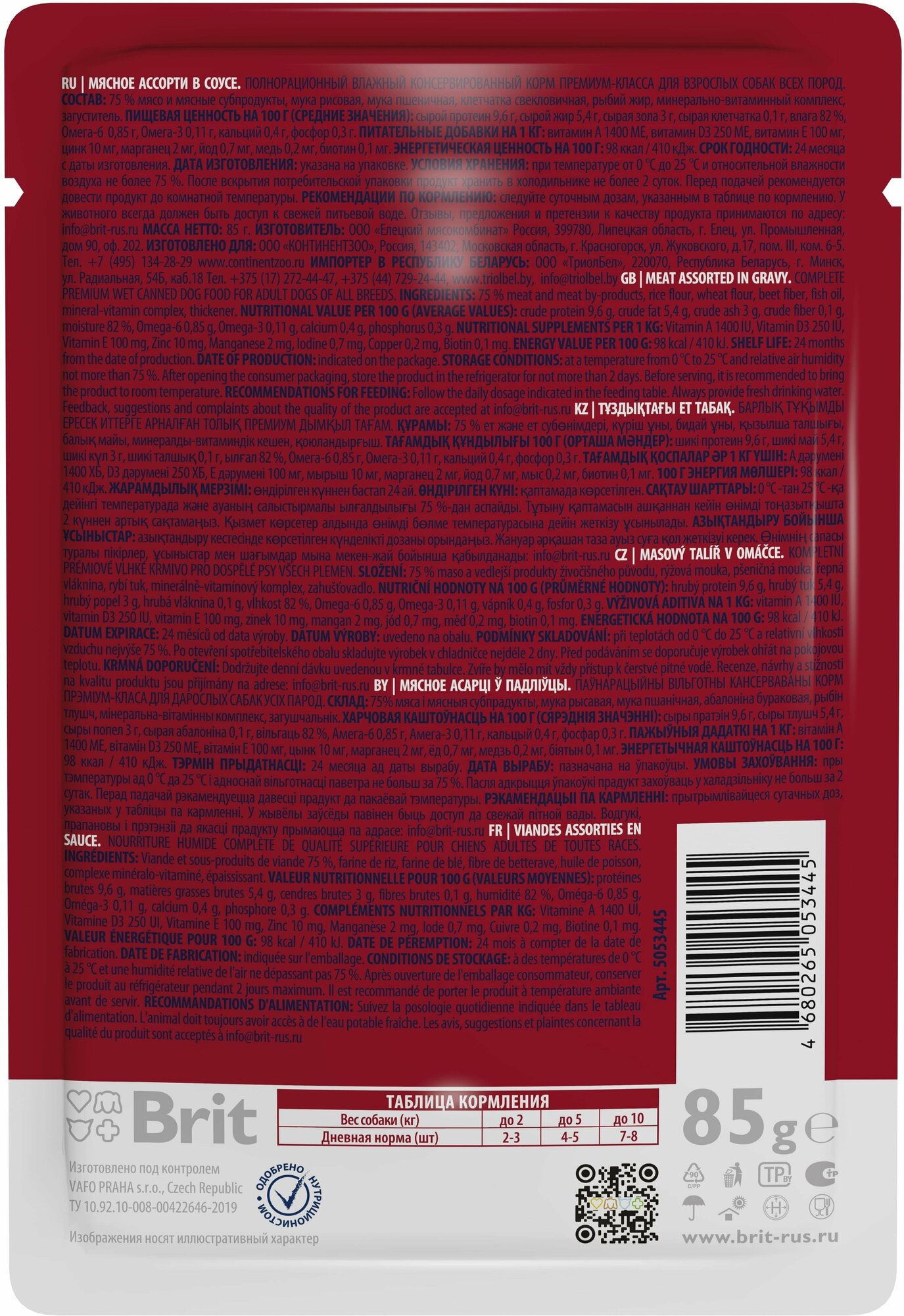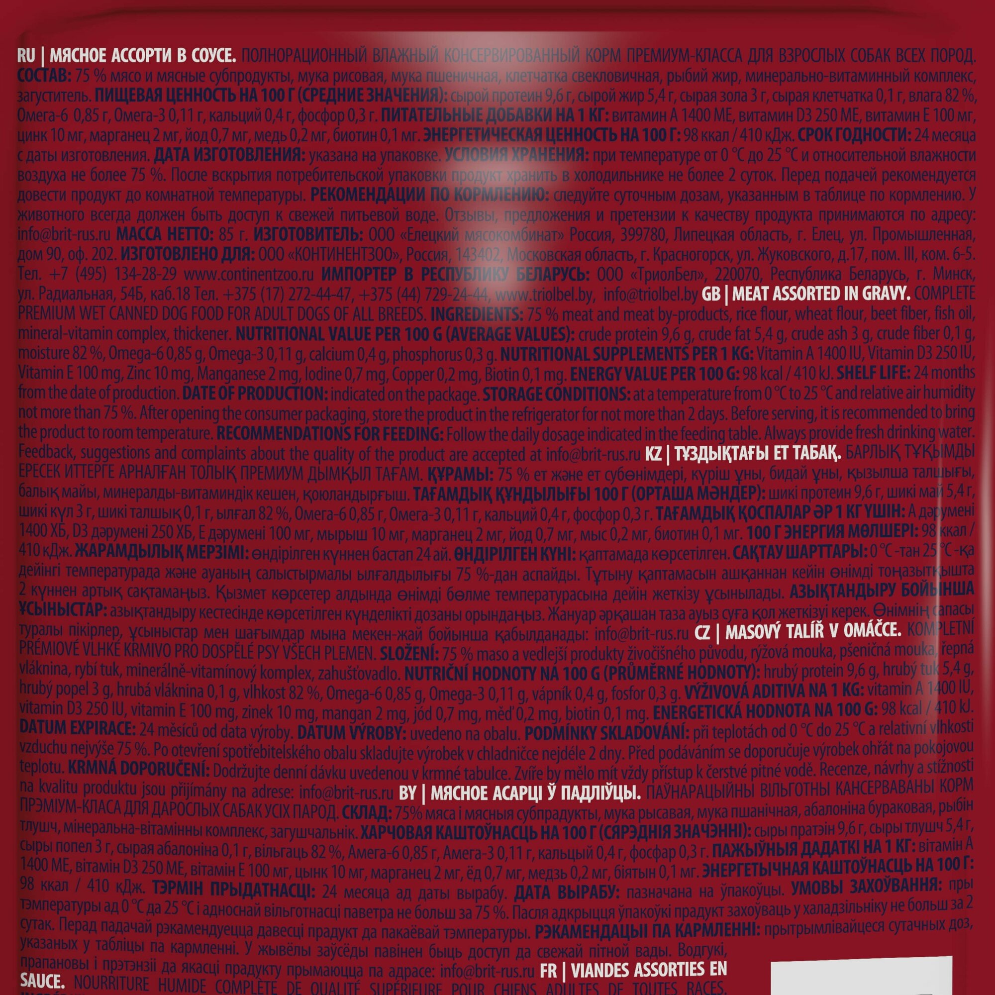 Корм для собак Корм влажный BRIT Premium для взрослых собак всех пород мясное ассорти в соусе 14шт*85 г