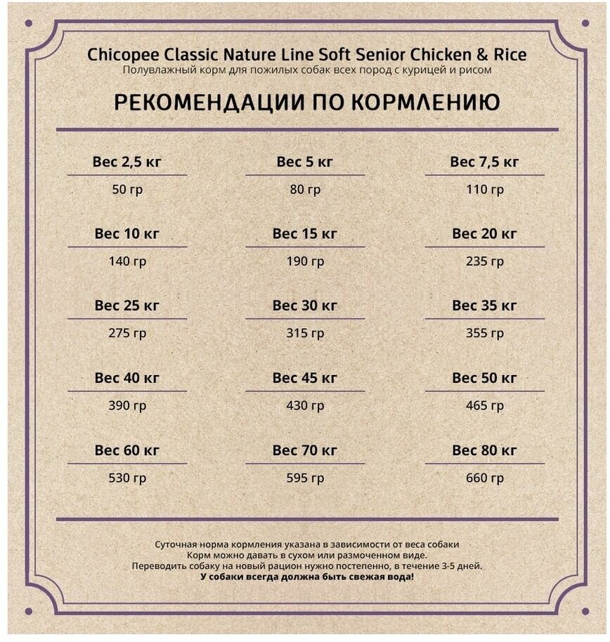 Лучшие цены. Chicopee CNL Soft Senior Chicken & Rice полувлажный корм для пожилых собак всех пород с курицей и рисом. 25% белка / 13% жира. Без пшеницы, говядины, свинины. Для собак старше 7 лет. Мягкие гранулы (18% влажности). Преимущества Chicopee CNL Senior Soft Chicken & Rice: Антивозрастной комплекс Увеличенное содержание витамина Е (метаболически активного антиоксиданта). Магазины в вашем городе.