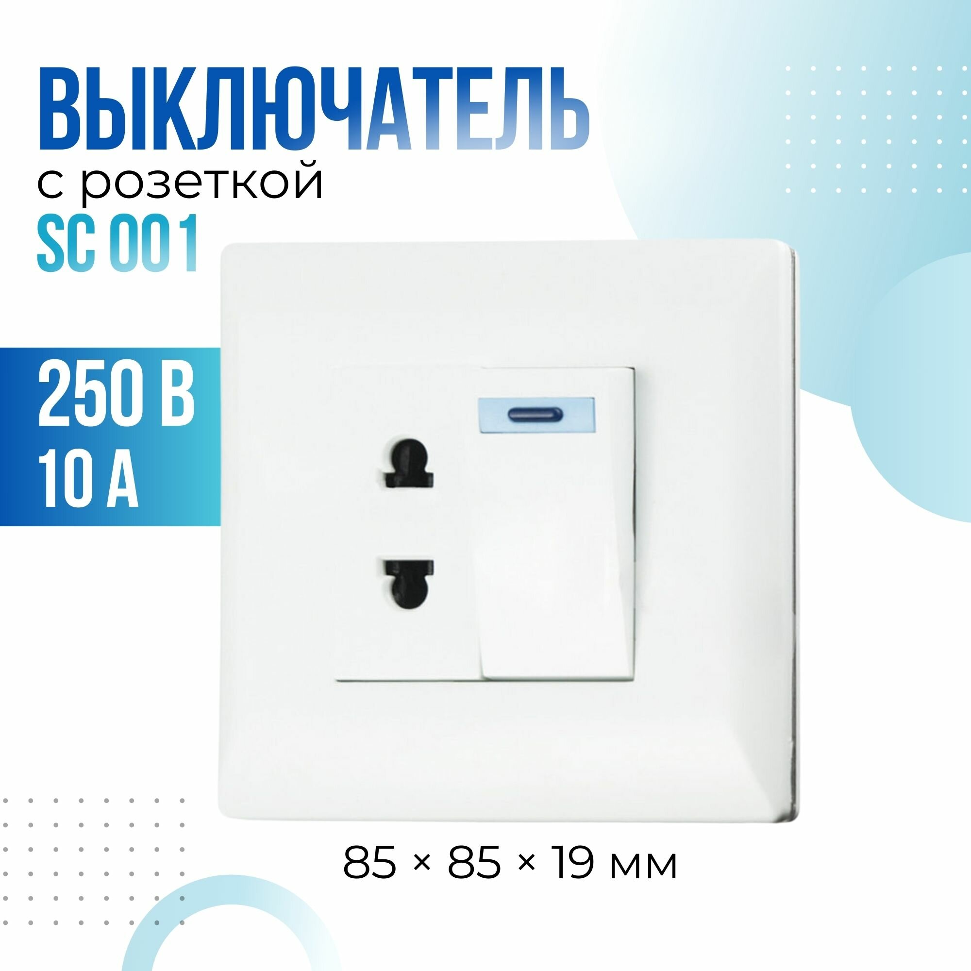 Выключатели Выключатель мебельный врезной с розеткой 001, GLS, 11.102.06.011, 10А, розетка с выключателем, белый