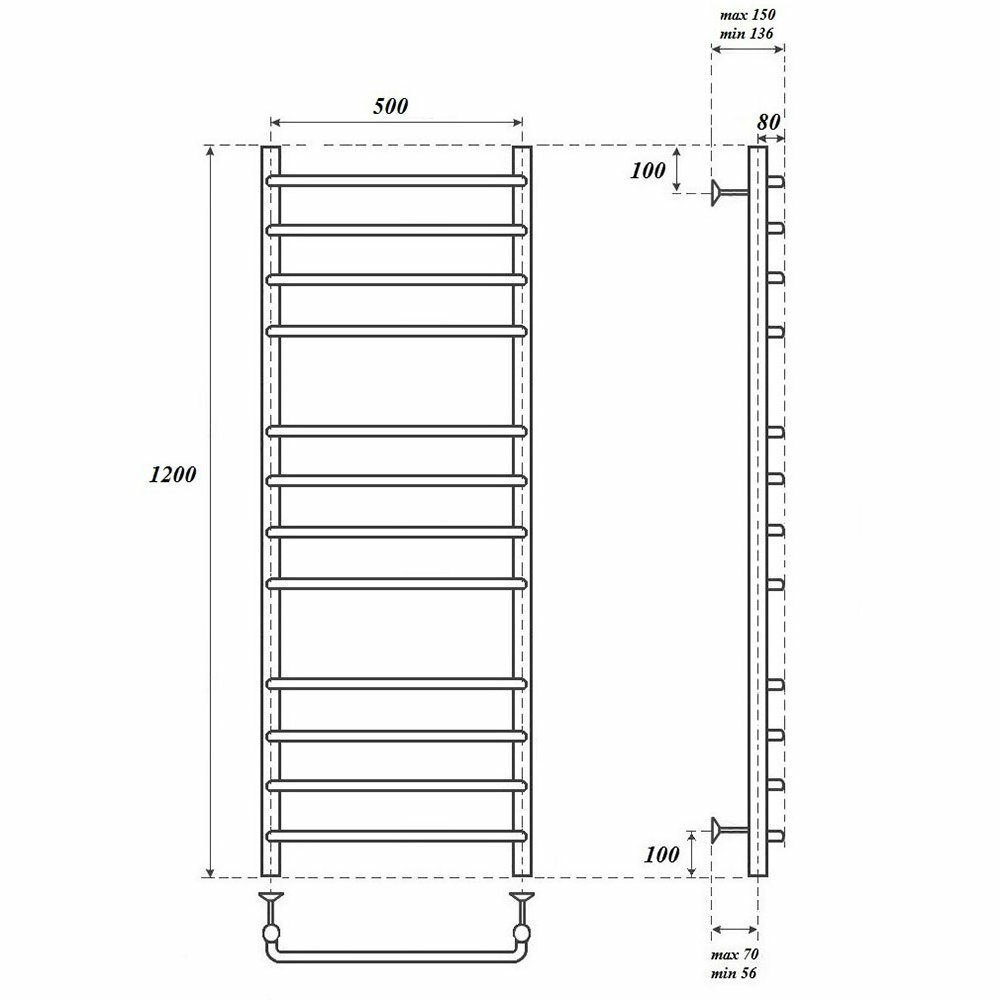 Полотенцесушитель электрический Point П12 500х1200 хром (PN09152E)