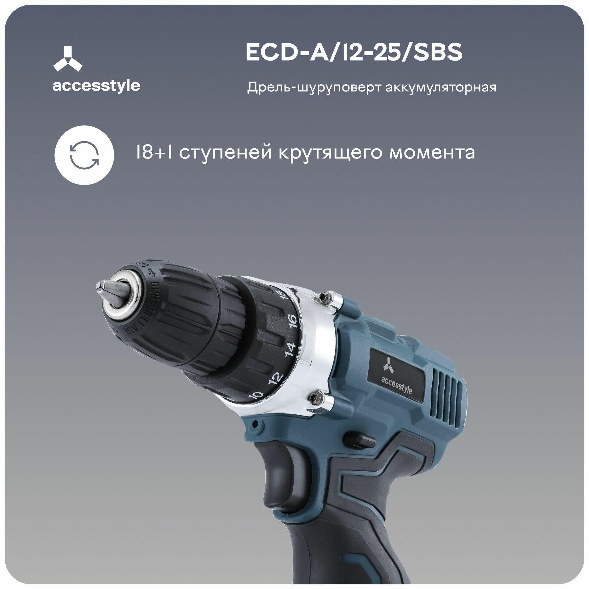 Дрели и шуруповерты Дрель-шуруповерт аккумуляторная Accesstyle ECD-A/12-25/SBS, 2 скорости, 12В