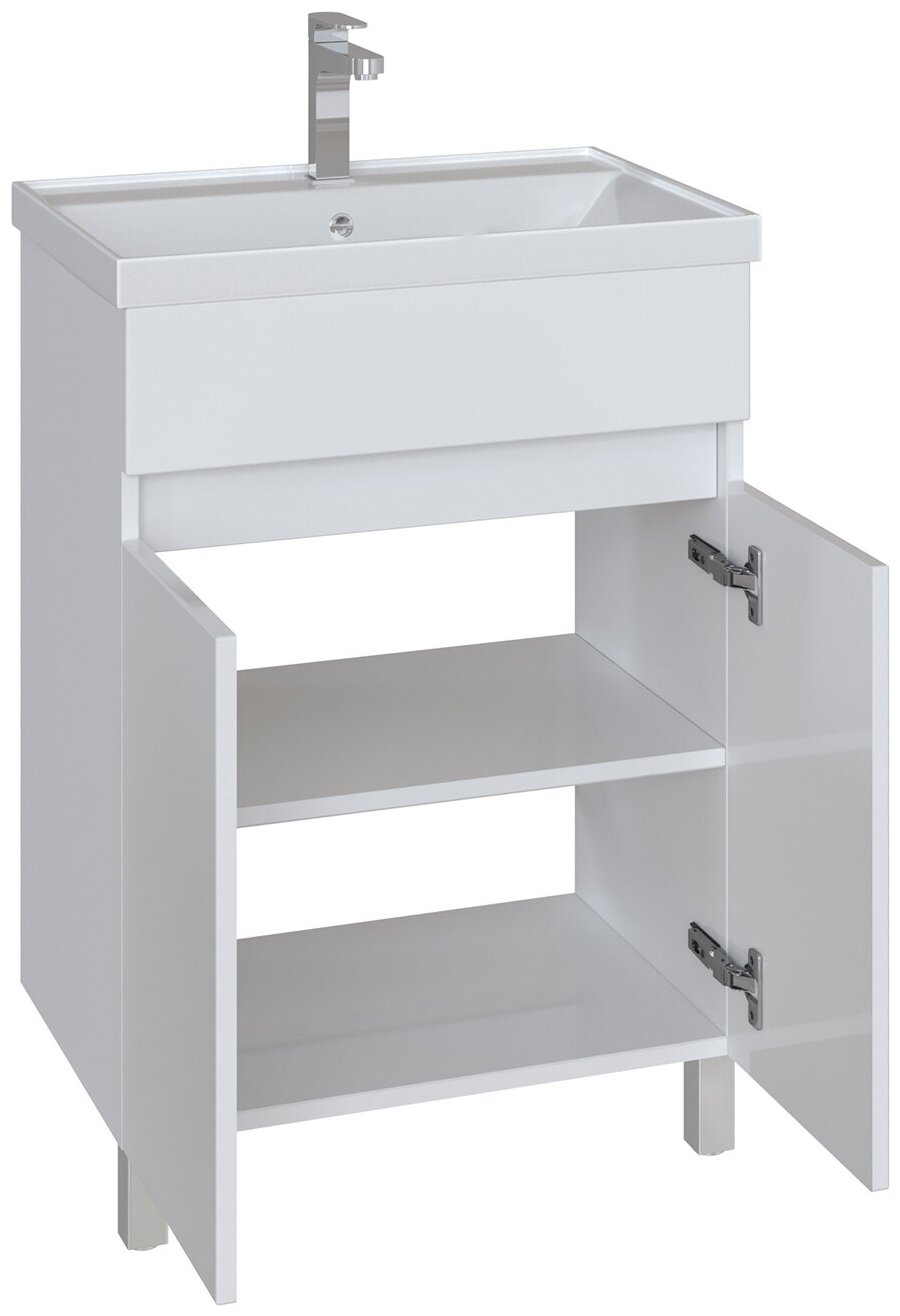Тумба напольная SanStar Квадро 60 с раковиной Фостер 60 (комплект) для ванной комнаты, белая