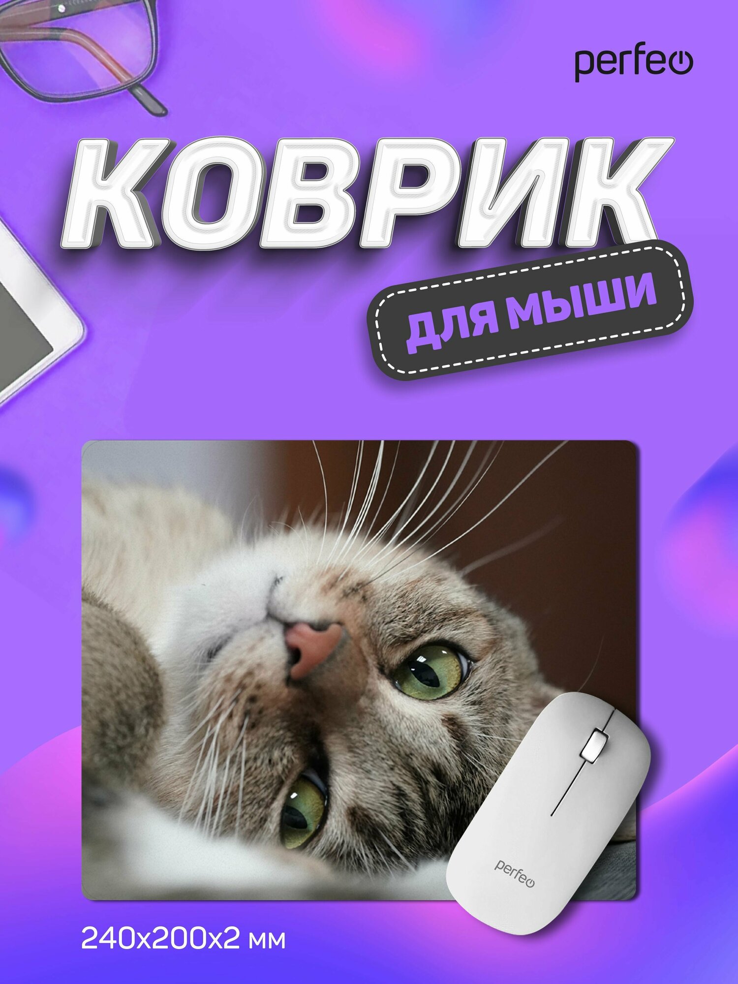 Коврик Perfeo Cat 14 (240*200*2 мм), ткань+резиновое основание 349 ₽ Подробнее