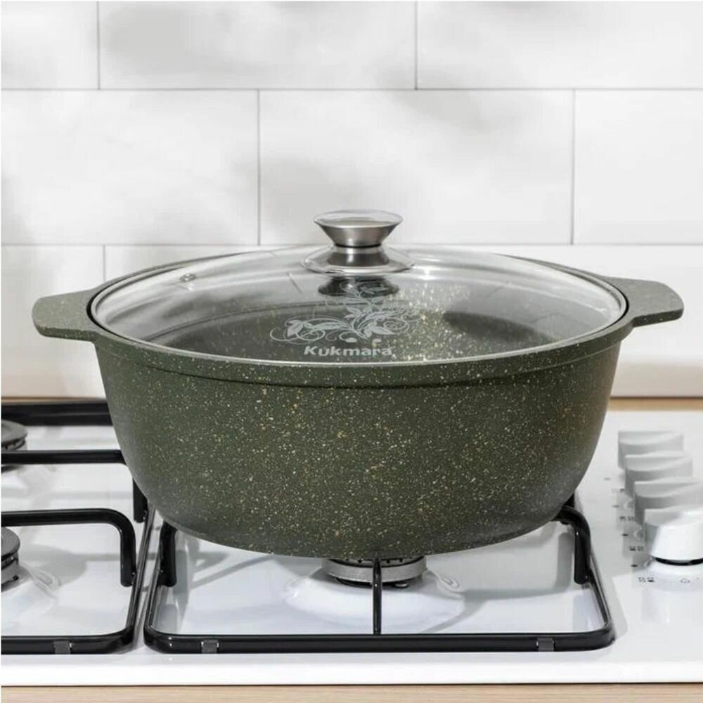 Жаровня Kukmara 4л с антипригарным покрытием, литой алюминий, стеклянная крышка 26см, цвет Malachite, ж41tsml