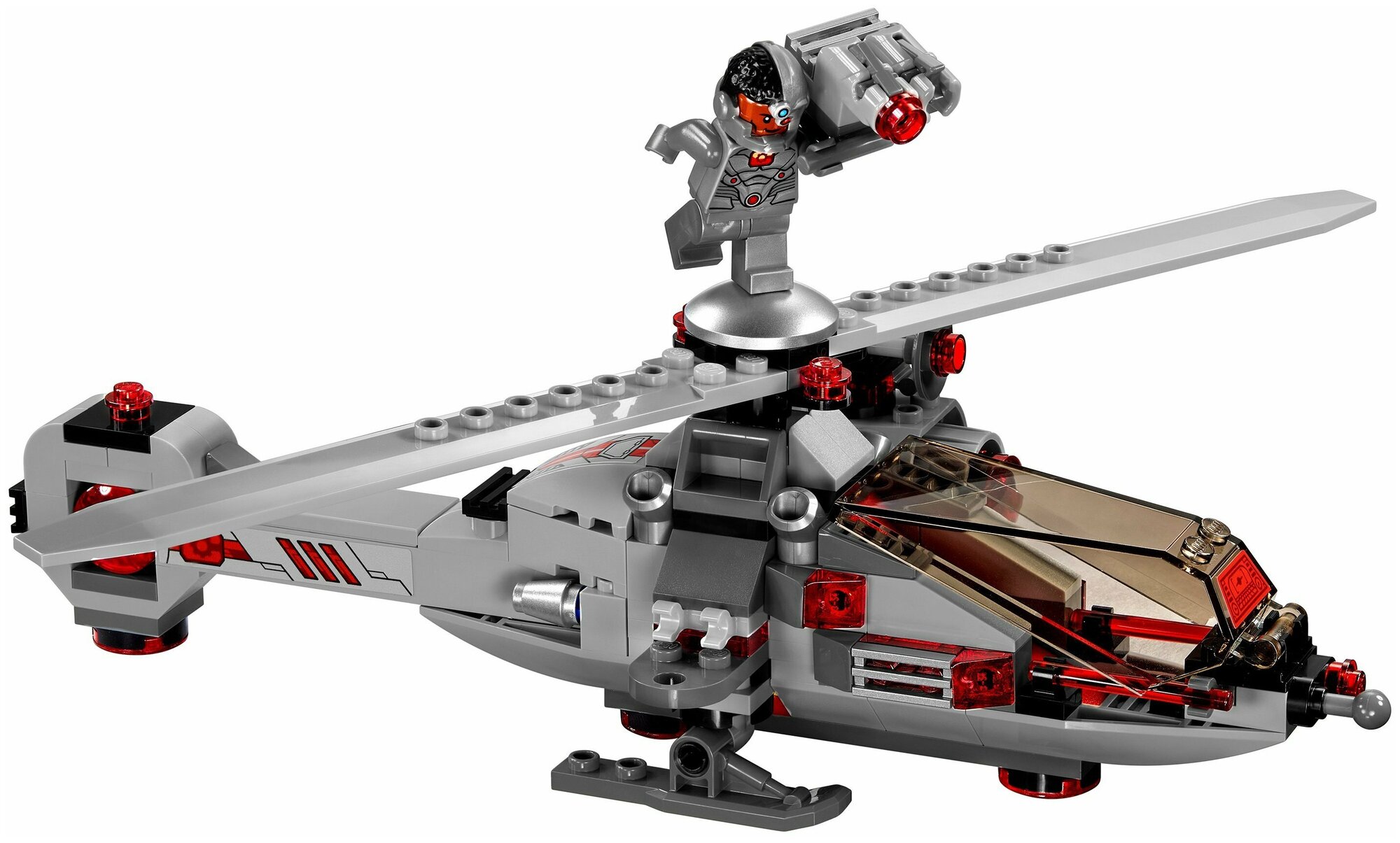 Лучшие цены. Скоростная погоня Лего 76098 Супергерои. элементы набора Вертолёт Киборга Габариты модели — 8x26x12 см. Вертолёт выполнен в сером и тёмно-сером цветах с красными прозрачными вставками в виде осветительных элементов. Кабина одноместная. Сверху находится двойной винт. В вытянутом хвосте расположена круглая турбина, с левой стороны — мощная пушка, выстреливающая сеткой, с правой — двойная турель. Автомобиль Эммы Фрост Габариты модели — 7x15x5 см. Магазины в вашем городе.