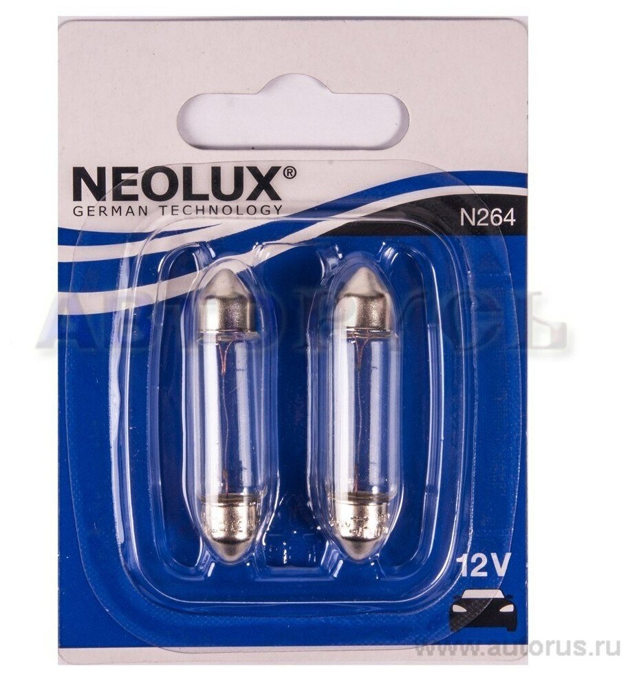 Лучшие цены. NEOLUX N26402B N264-02B_к-кт ламп! (C10W) 12V 10W SV8.5-810 L=47 mm внутр. освещ, номерн. знака (2шт. в блистере). Магазины в вашем городе.