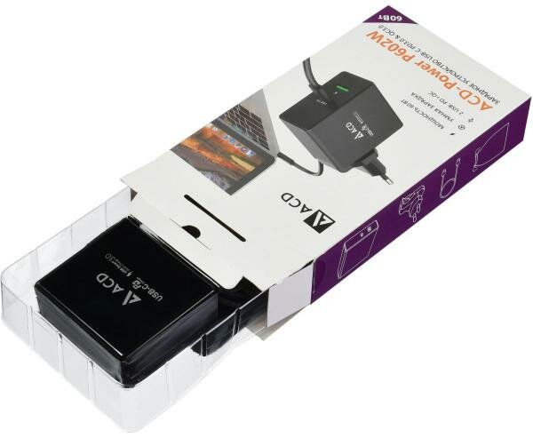 ACD Зарядное устройство ACD P602W ACD-P602W-V1B, 1xUSB QC3.0, 1xType-C PD3.0, черный (60Вт) (ret)