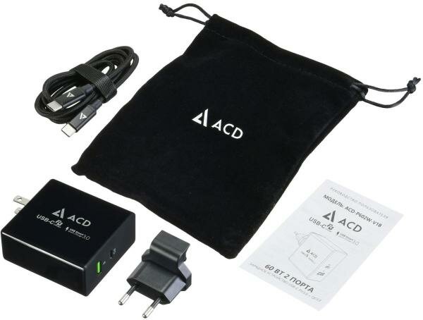 Лучшие цены. Сетевое зарядное устройство ACD ACD-P602W-V1B USB-C 3/2/1.5 А черный. Магазины в вашем городе.