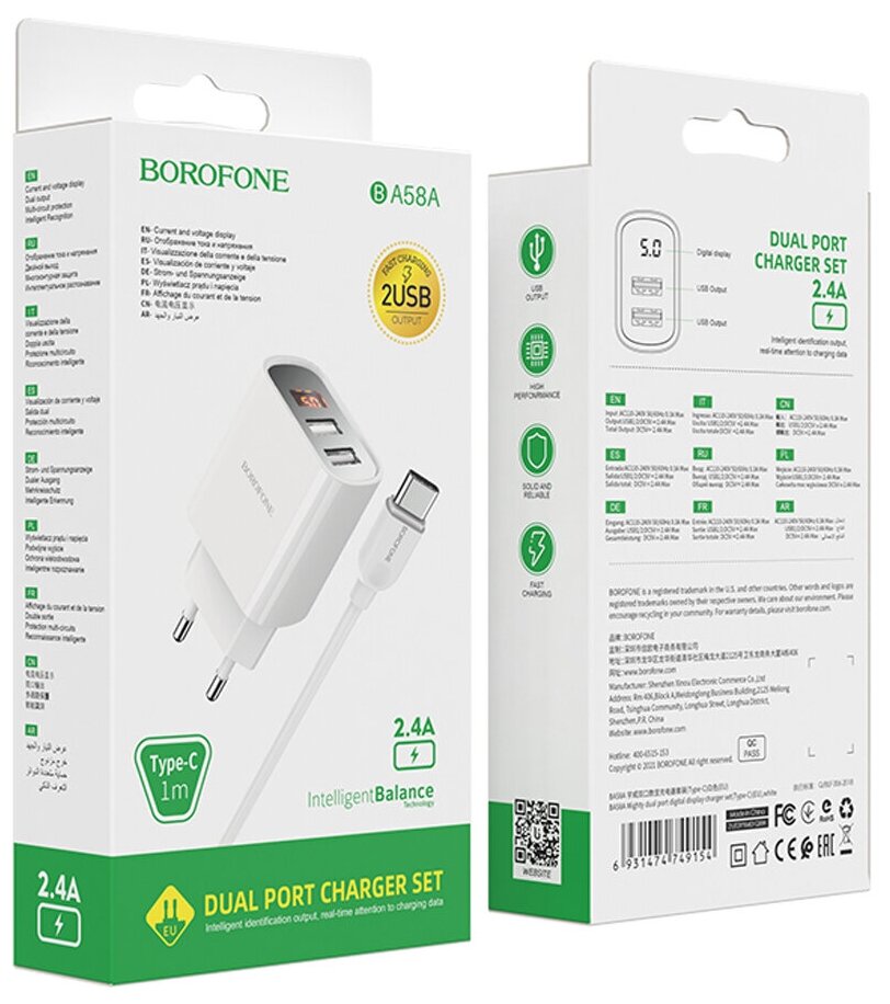 Зарядки для гаджетов Зарядное устройство Borofone BA58A Mighty 2xUSB 2.4A