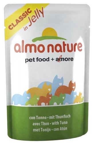 Лучшие цены. Almo Nature Classic Nature Jelly Cat Tuna пауч для кошек тунец в желе Classic Nature Jelly –восхитительно вкусный функциональный влажный корм, содержащий Желатин, который является натуральным средством для вывода шерсти из организма кошки, помогающий защитить пищеварительный тракт от раздражения. Содержание мясного или рыбного филе в корме не менее 50%. Этот рецепт является одним из самых излюбленных у кошек, потому, что желе не только защищает пищеварительный тракт вашей любимицы, но и придает корму. Магазины в вашем городе.