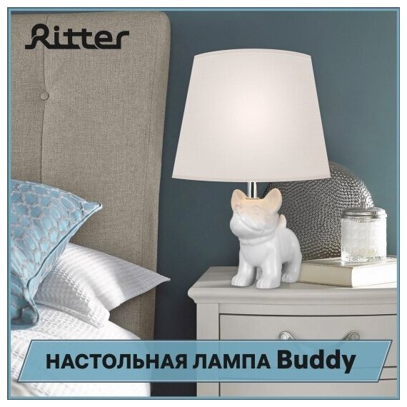 Лучшие цены. Настольный светильник Ritter BUDDY с абажуром используется в качестве дополнительного источника освещения в прикроватной зоне. Настольную лампу можно использовать в любой комнате, но наиболее уместным размещением будет спальня. Настольный светильник имеет лаконичный дизайн в стиле “минимализм” и классические формы плафона и основания. Эта особенность позволяет удачно вписать его в любой интерьер современного жилья. Магазины в вашем городе.