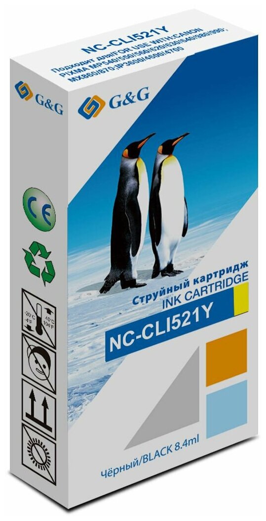 Картридж Картридж G&G NC-CLI521Y совместимый струйный картридж (Canon CLI-521Y - 2936B004) 8.4 мл, желтый